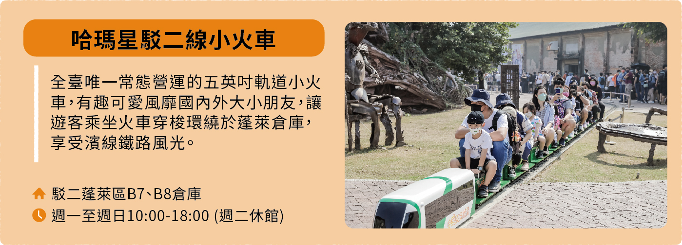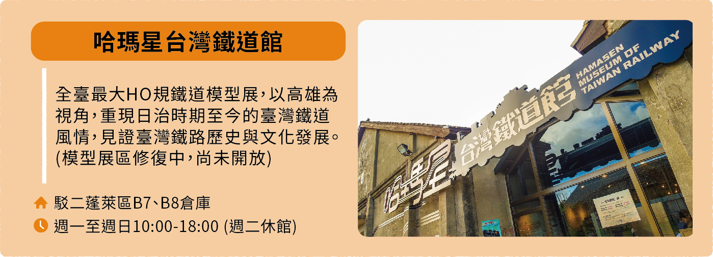 2024年是高雄設市百年,重啓鐵道復駛是城市年度最重要的計畫之一,除了「哈瑪星號」火車運行,更從全台各地搜羅了各式各樣的火車車型,展示於哈瑪星鐵道園區。邀請大家一同見證高雄現代化發展的起點,搭上這班歷史列車,重返哈瑪星的風華年代!